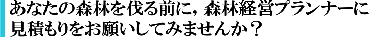 森林を伐る前に立木の評価や伐採や再造林などの経費について,森林経営プランナーに見積りをお願いしてみませんか?